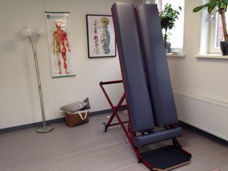 BSR maakt gebruik van een speciale comfortabele behandelbank. U hoeft hier niet op te klimmen, maar u gaat tegen de verticale geplaatste bank staan welke daarna in horizontale stand wordt neergelaten.